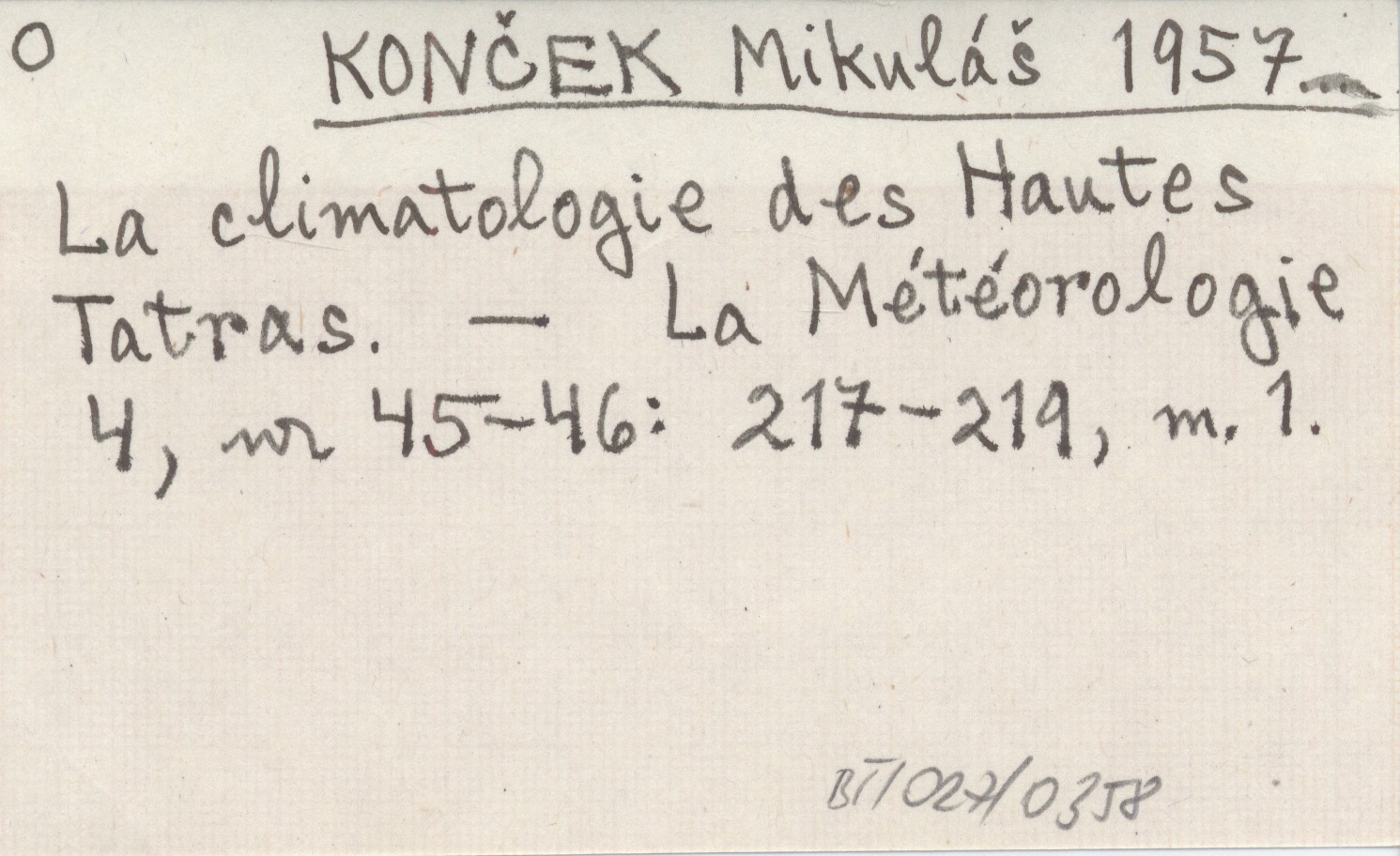 KONČEK Mikuláš 1957... La climatologie des Hautes Tatras.