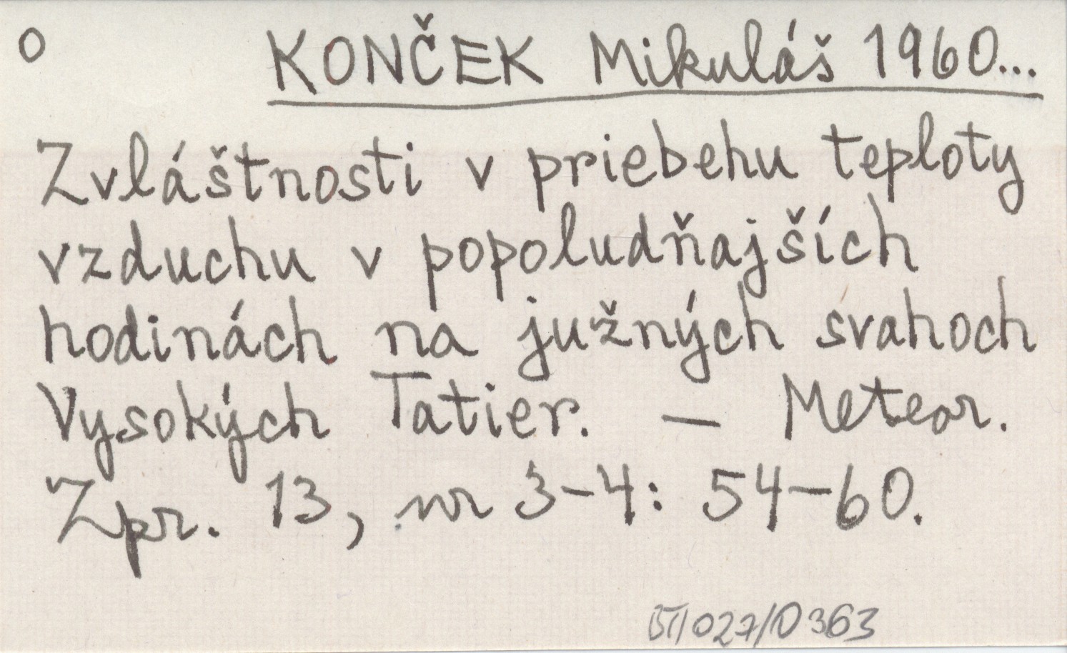 KONÈEK Mikuláč 1960... Zvláčtnosti v priebehu teploty vzduchu v popoludòajčích hodinách na juŸnęch svahoch Vysokęch Tatier.