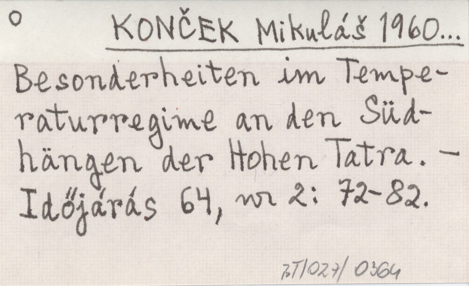 KONČEK Mikuláš 1960... Besonderheiten im Temperaturregime an den Südhängen der Hohen Tatra.