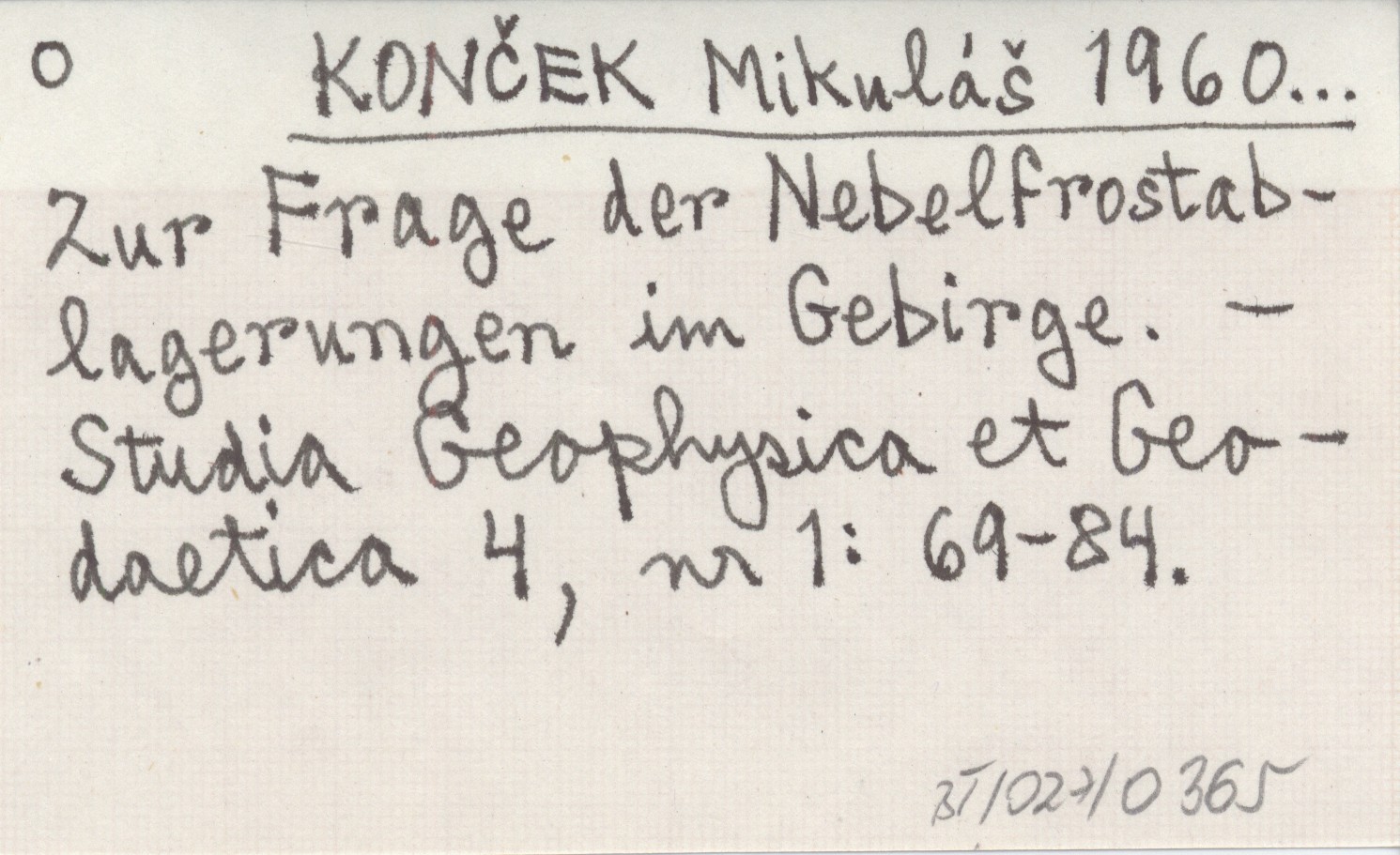 KONČEK Mikuláš 1960... Zur Frage der Nebelfrostablagerungen im Gebirge.