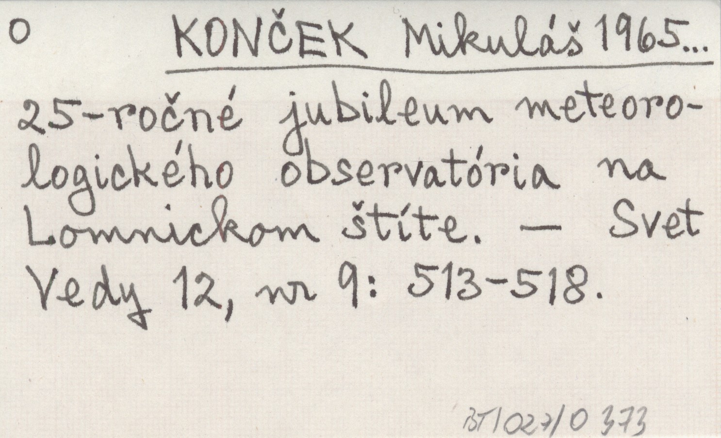 KONČEK Mikuláš 1965... 25-ročné jubileum meteorologického observatória na Lomnickom štíte.