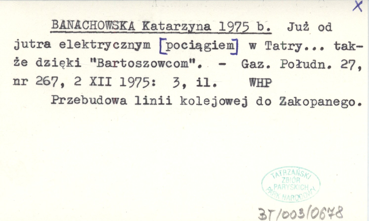 BANACHOWSKA Katarzyna 1975 b Już od jutra elektrycznym [pociągiem] w Tatry ... także dzięki "Bartoszowcom".