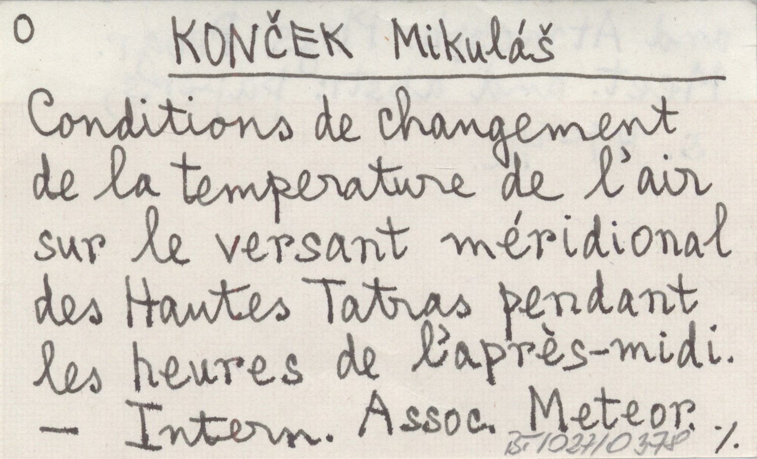 KONČEK Mikuláš Conditions de changement de la temperature de l'air sur le versant méridional des Hautes Tatras pendant les heures de l'aprés-midi.