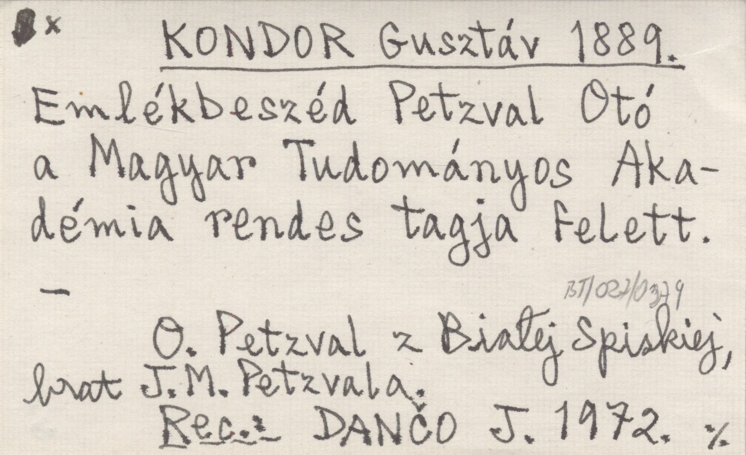 KONDOR Gusztáv 1889 Emlékbeszéd Petzval Otó a Magyar Tudományos Akadémia rendes tagja felett.