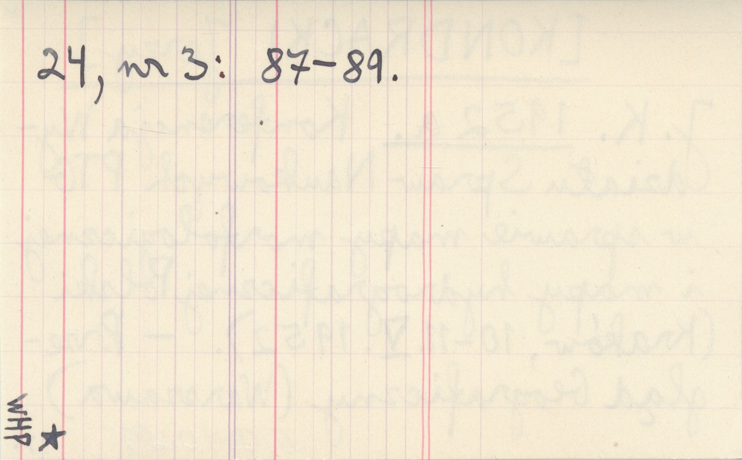J. K. [KONDRACKI Jerzy] 1952 a Konferencja Wydziału Spraw Naukowych PTG w sprawie mapy morfologicznej i mapy hydrograficznej Polski (Kraków, 10-11.V.1952).