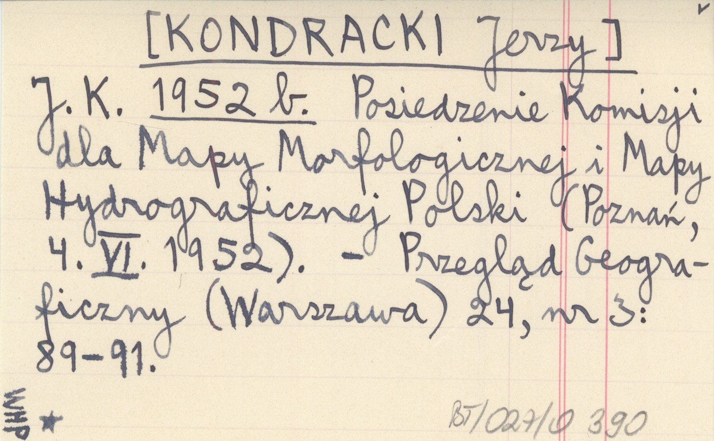 J. K. [KONDRACKI Jerzy] 1952 b Posiedzenie Komisji dla Mapy Morfologicznej i Mapy Hydrograficznej Polski (Poznań, 4.VI.1952).
