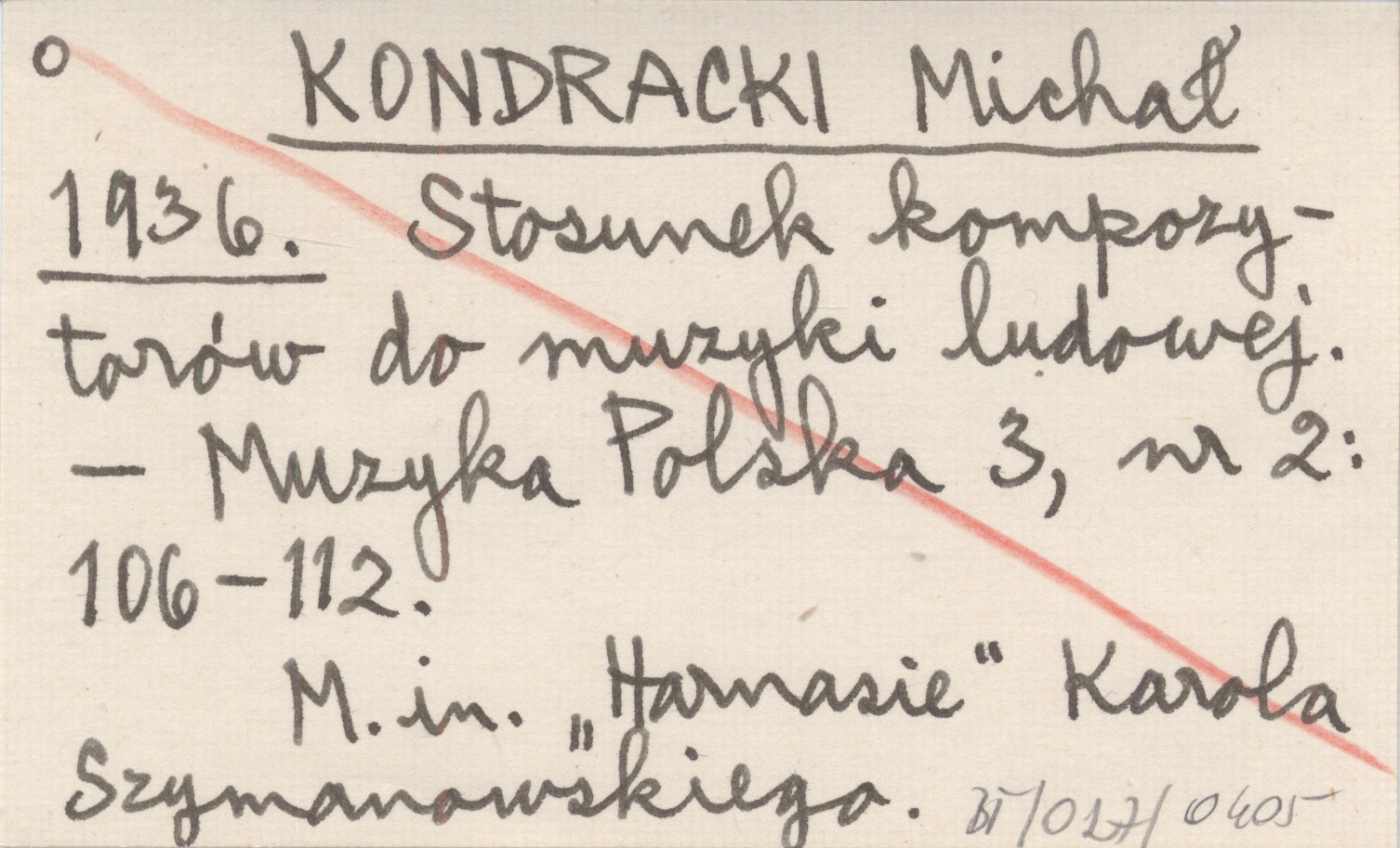 KONDRACKI Michał 1936 Stosunek kompozytorów do muzyki ludowej.