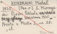 KONDRACKI Michał 1935 S. Mierczyński: Pieśni Podhala. Warszawa 1935.