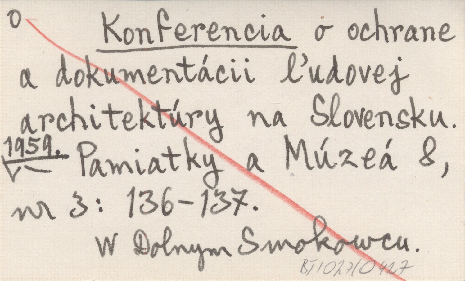 Konferencia o ochrane a dokumentácii ľudovej architektúry na Slovensku. 1959