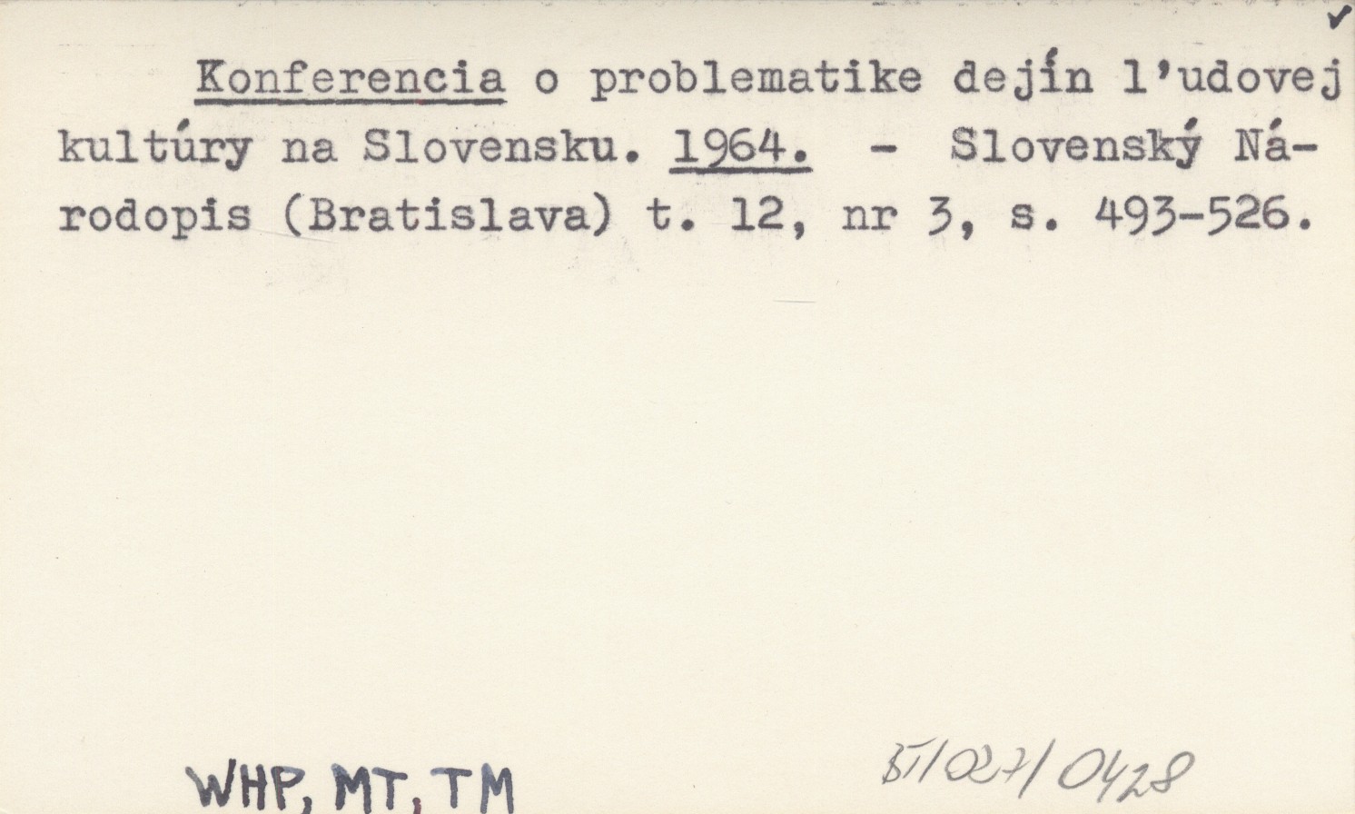 Konferencia o problematike dejín ľudovej kultúry na Slovensku. 1964