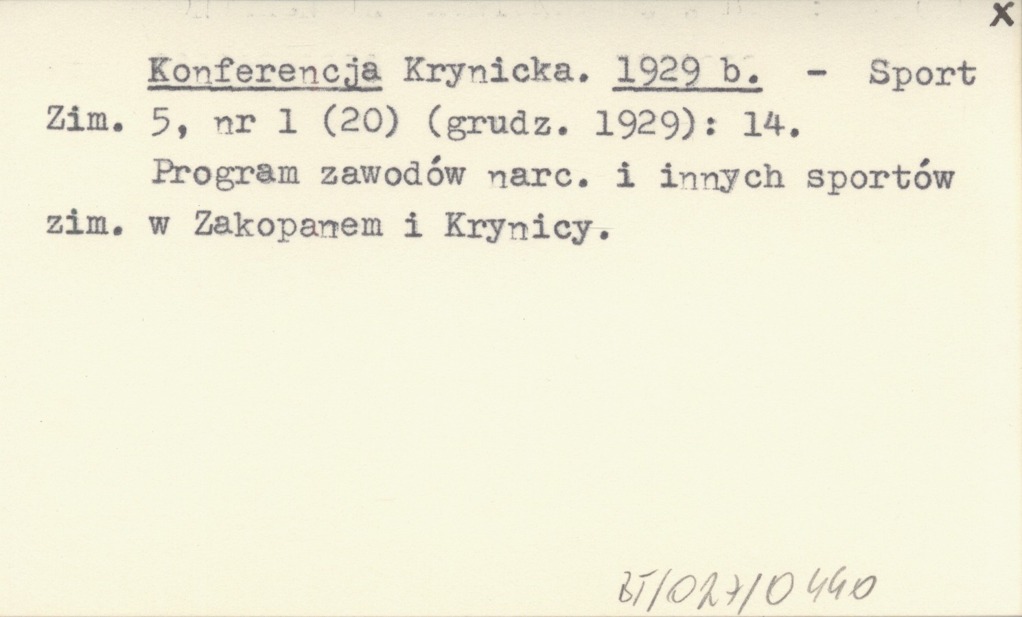 Sport Zimowy, 5, nr 1 (20) (XII 1929): 14. Program zawodów narc. i innych sportów zim. w Zakopanem i Krynicy.