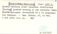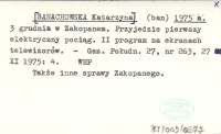 (ban) [BANACHOWSKA Katarzyna] 1975 c Siedem miesięcy przed terminem. Elektryczny [pociąg] przebył wczoraj po raz pierwszy trasę Kraków - Zakopane. Przekaźnik TV z II programem dla Podhala.