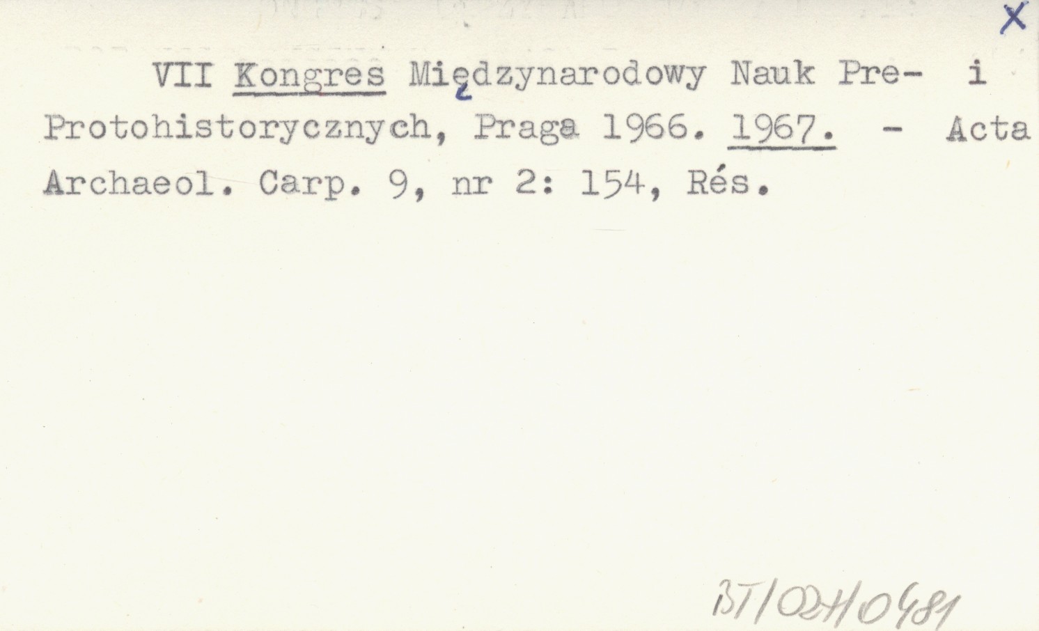 VII Kongres Międzynarodowy Nauk Pre- i Protohistorycznych, Praga 1966. 1967
