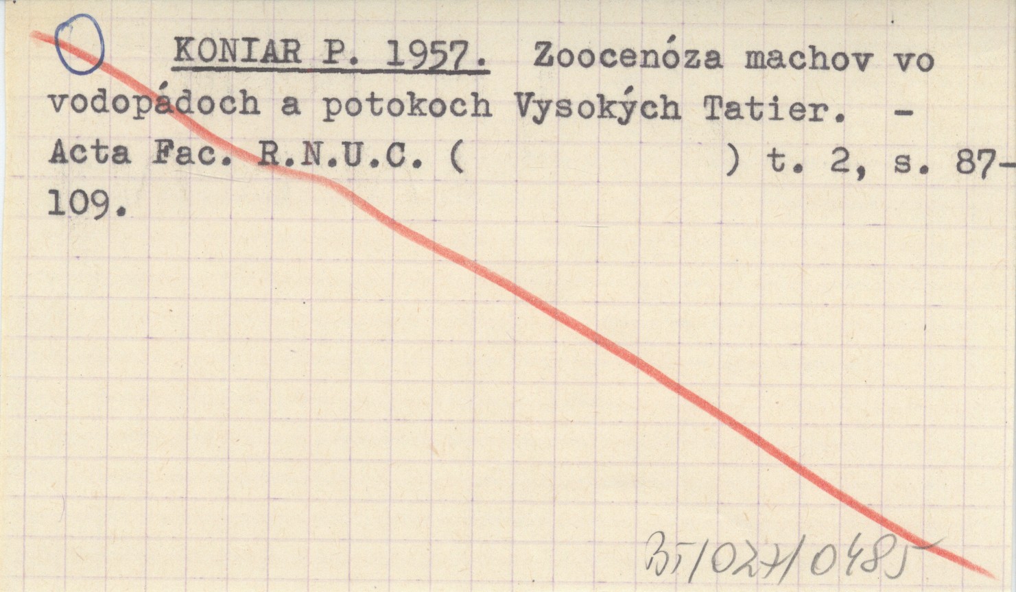 KONIAR P. 1957 Zoocenóza machov vo vodopádoch a potokoch Vysokých Tatier.