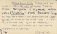 KONIAR Pavel 1955 Príspevok k poznaniu vírnikov (Rotatoria) machov Vysokých Tatier. Materiali k poznaniju kolovratok (Rotatoria) mchov Vysokich Tatr. Beitrag zur Kenntnis der Rädertierfauna (Rotatoria) der Moose in der Hohen Tatra.