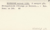 KONIECZNY Antoni 1930 Z naszych gór. Dwutygodniowa włóczęga po Tatrach...