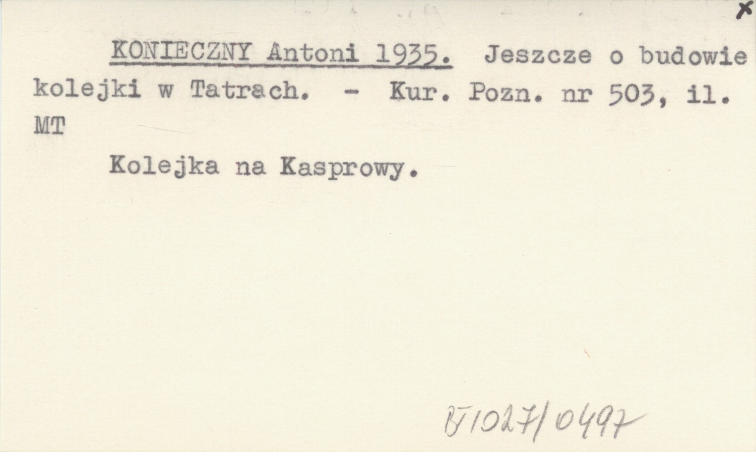 KONIECZNY Antoni 1935 Jeszcze o budowie kolejki w Tatrach.