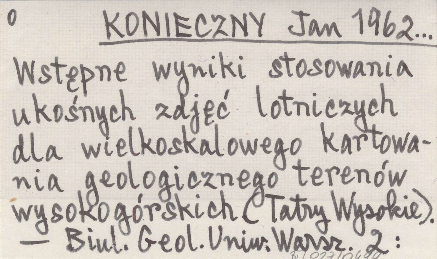 KONIECZNY Jan 1962... Wstępne wyniki stosowania ukośnych zdjęć lotniczych dla wielkoskalowego kartowania geologicznego terenów wysokogórskich (Tatry Wysokie).