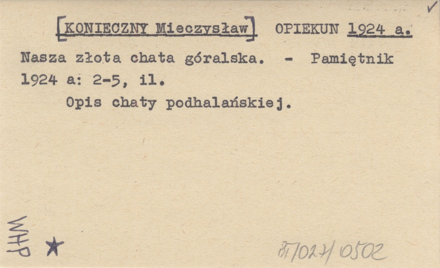 OPIEKUN [KONIECZNY Mieczysław] 1924 a Nasza złota chata góralska.