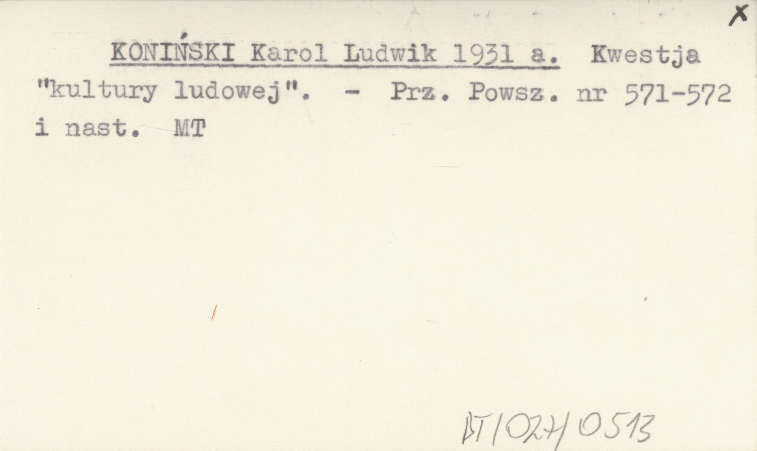 KONIŃSKI Karol Ludwik 1931 a Kwestja "kultury ludowej".