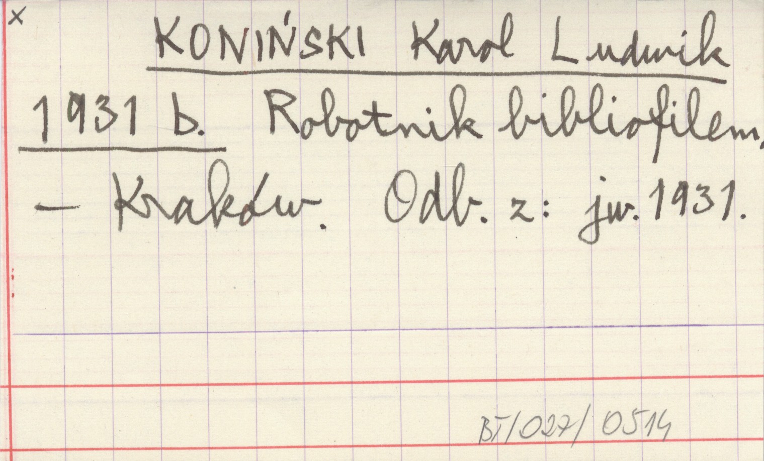 KONIŃSKI Karol Ludwik 1931 b Robotnik bibliofilem.