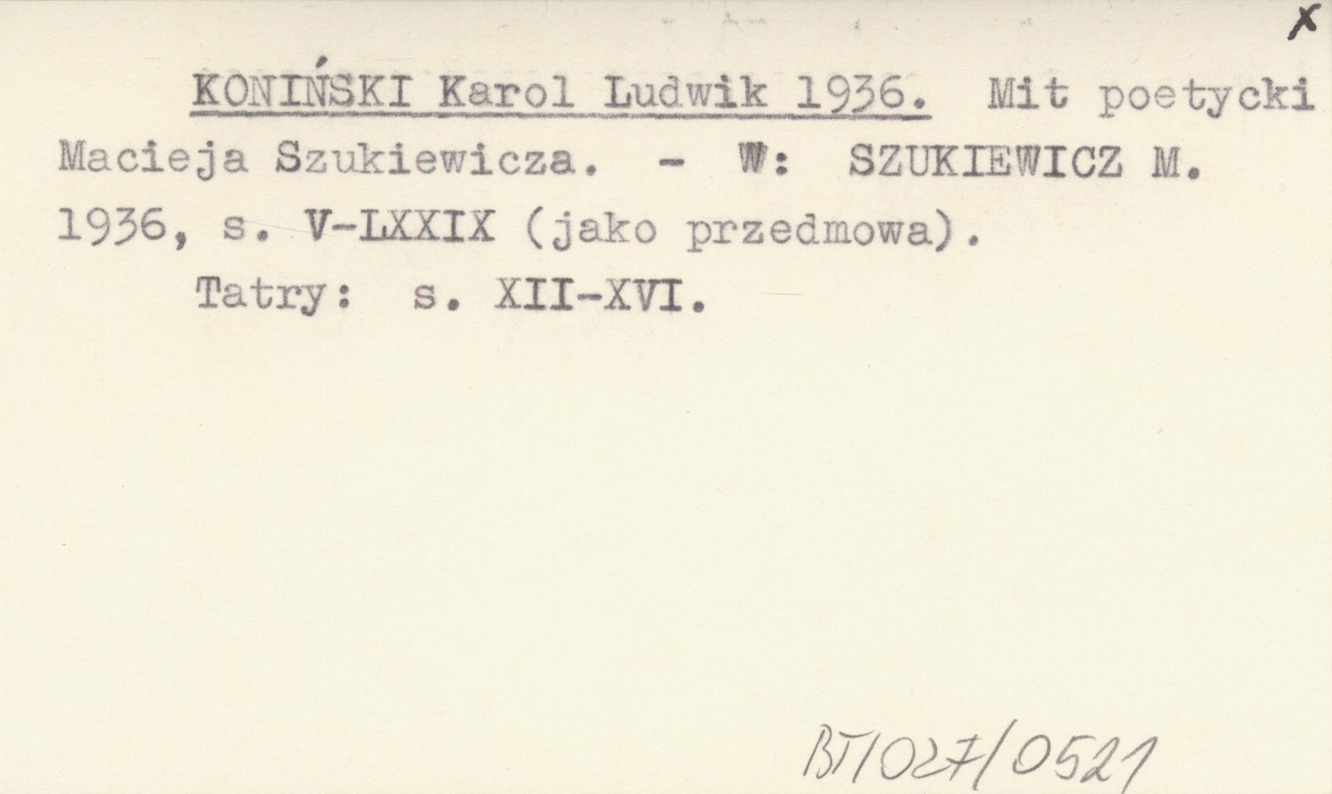 KONIŃSKI Karol Ludwik 1936 Mit poetycki Macieja Szukiewicza.