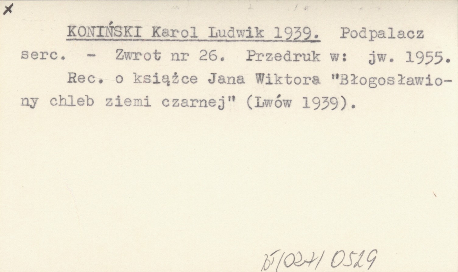 Zwrot, Nr 26. Rec. o książce Jana Wiktora "Błogosławiony chleb ziemi czarnej" (Lwów 1939). Przedruk w: jw. 1955
