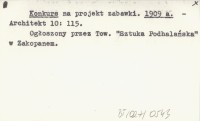 Konkurs na "Sokolnię" w Zakopanem. 1907