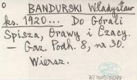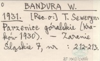 BANDURA W. 1931 T. Seweryn: Parzenice góralskie (Kraków 1930).