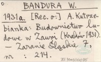 BANDURA W. 1931 a A. Kutrzebianka: Budownictwo ludowe w Zawoi. (Kraków 1931).