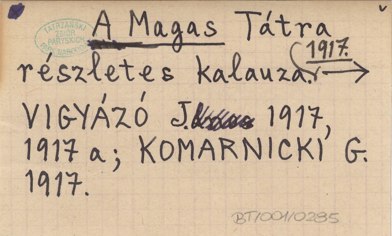 VIGYÁZÓ J. 1917, 1917 a KOMARNICKI G. 1917