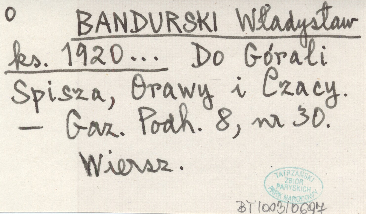 BANDURSKI Władysław ks. 1920... Do Górali Spisza, Orawy i Czacy.