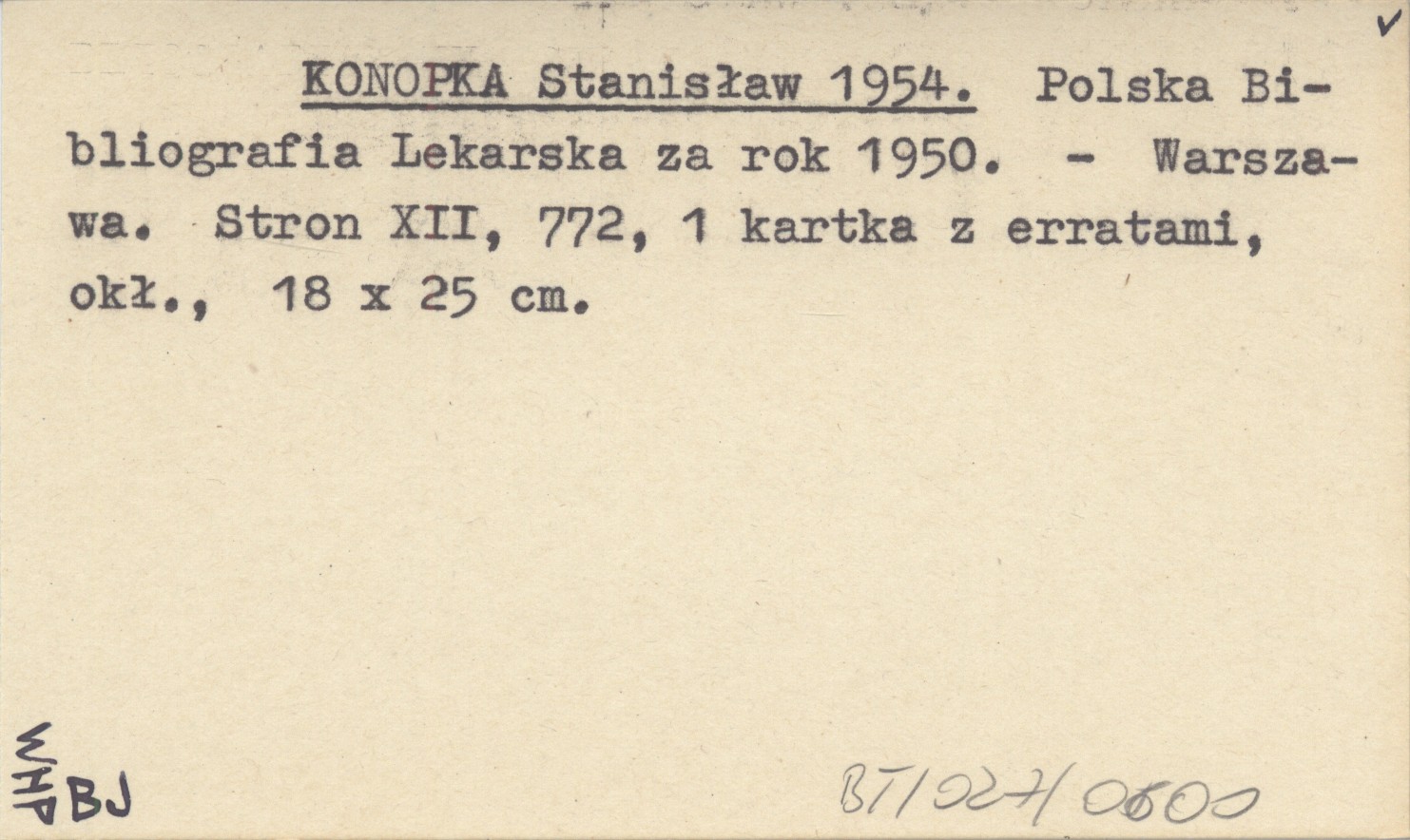 KONOPKA Stanisław 1954 Polska Bibliografia Lekarska za rok 1950.