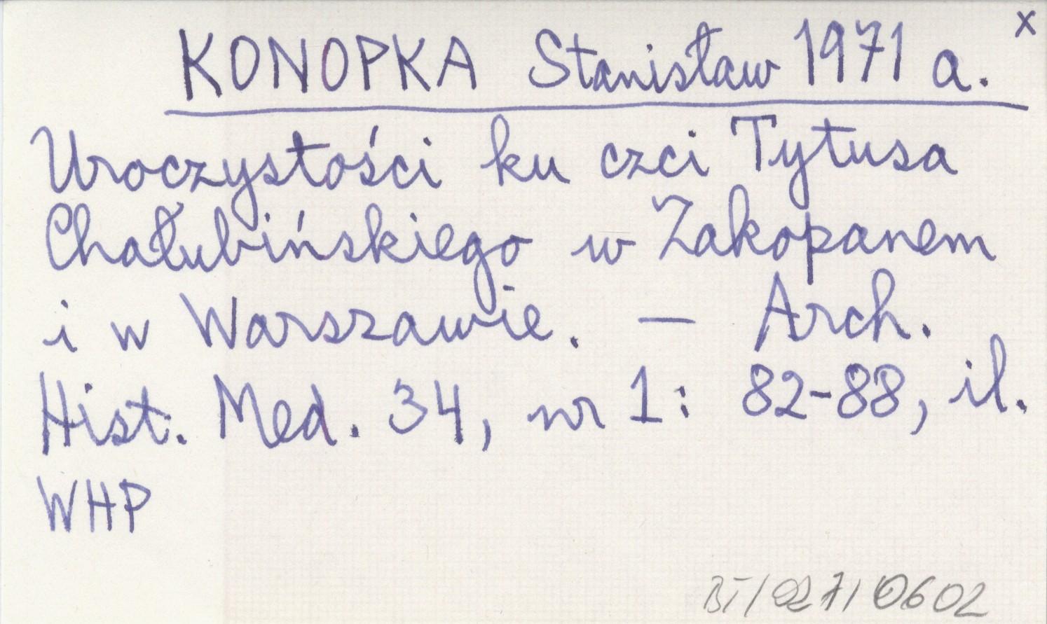 KONOPKA Stanisław 1971 a Uroczystości ku czci Tytusa Chałubińskiego w Zakopanem i w Warszawie.