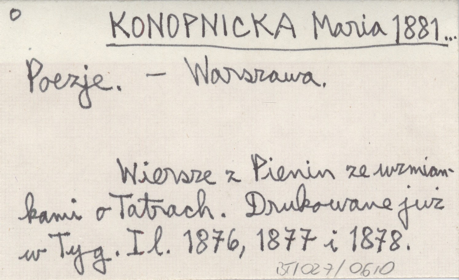 Warszawa , Wiersze z Pienin ze wzmiankami o Tatrach. Drukowane już w Tyg. Il. 1876, 1877 i 1878.