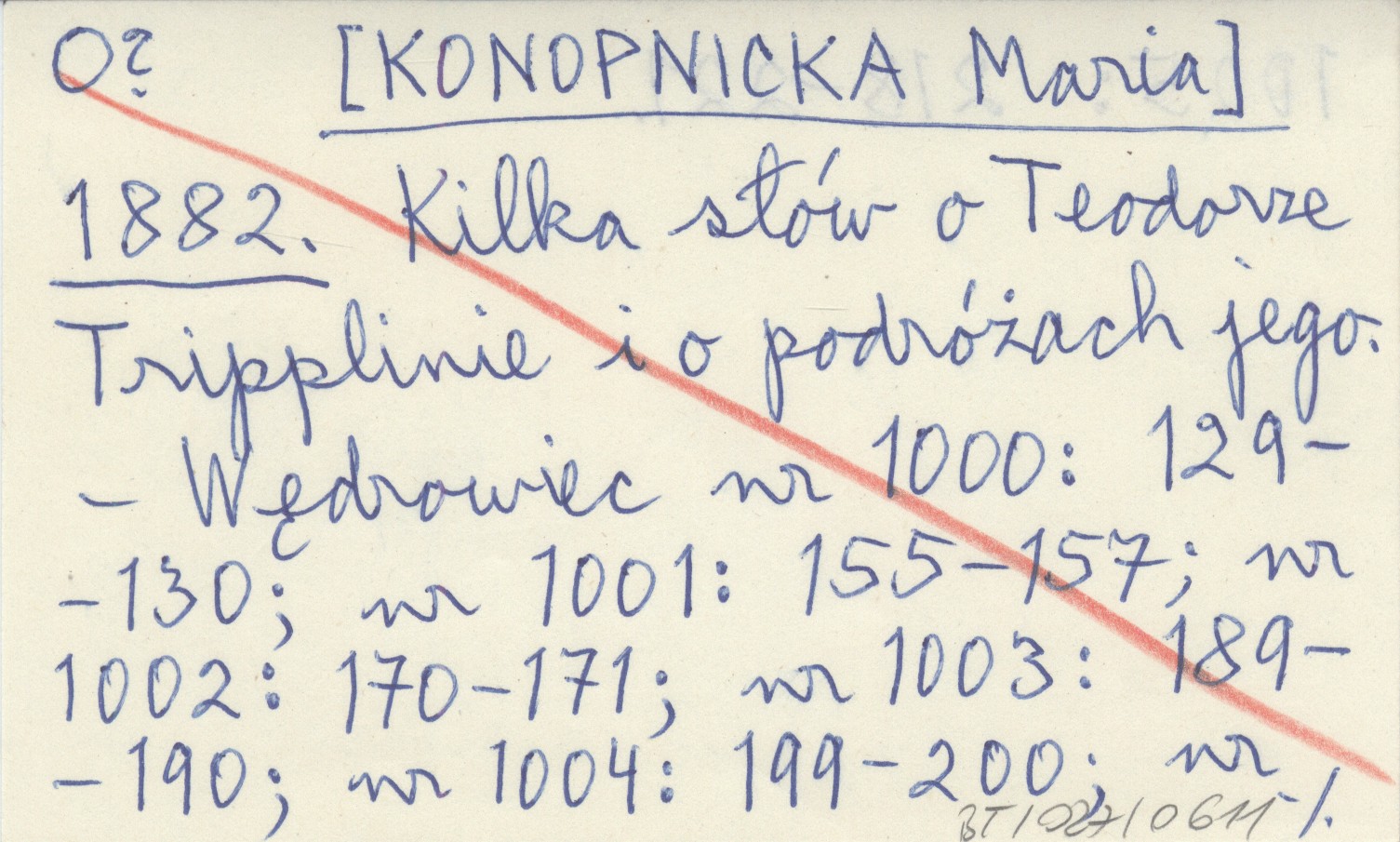 [KONOPNICKA Maria] 1882 Kilka słów o Teodorze Tripplinie i o podróżach jego.
