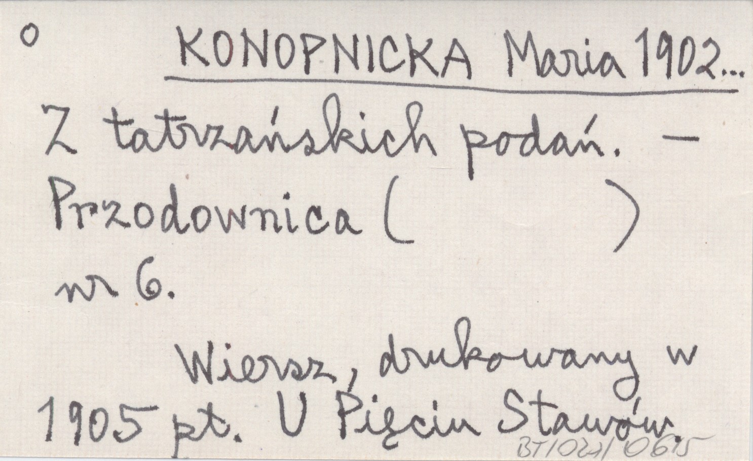Przodownica, Nr 6. Wiersz, drukowany w 1905 pt. U Pięciu Stawów.