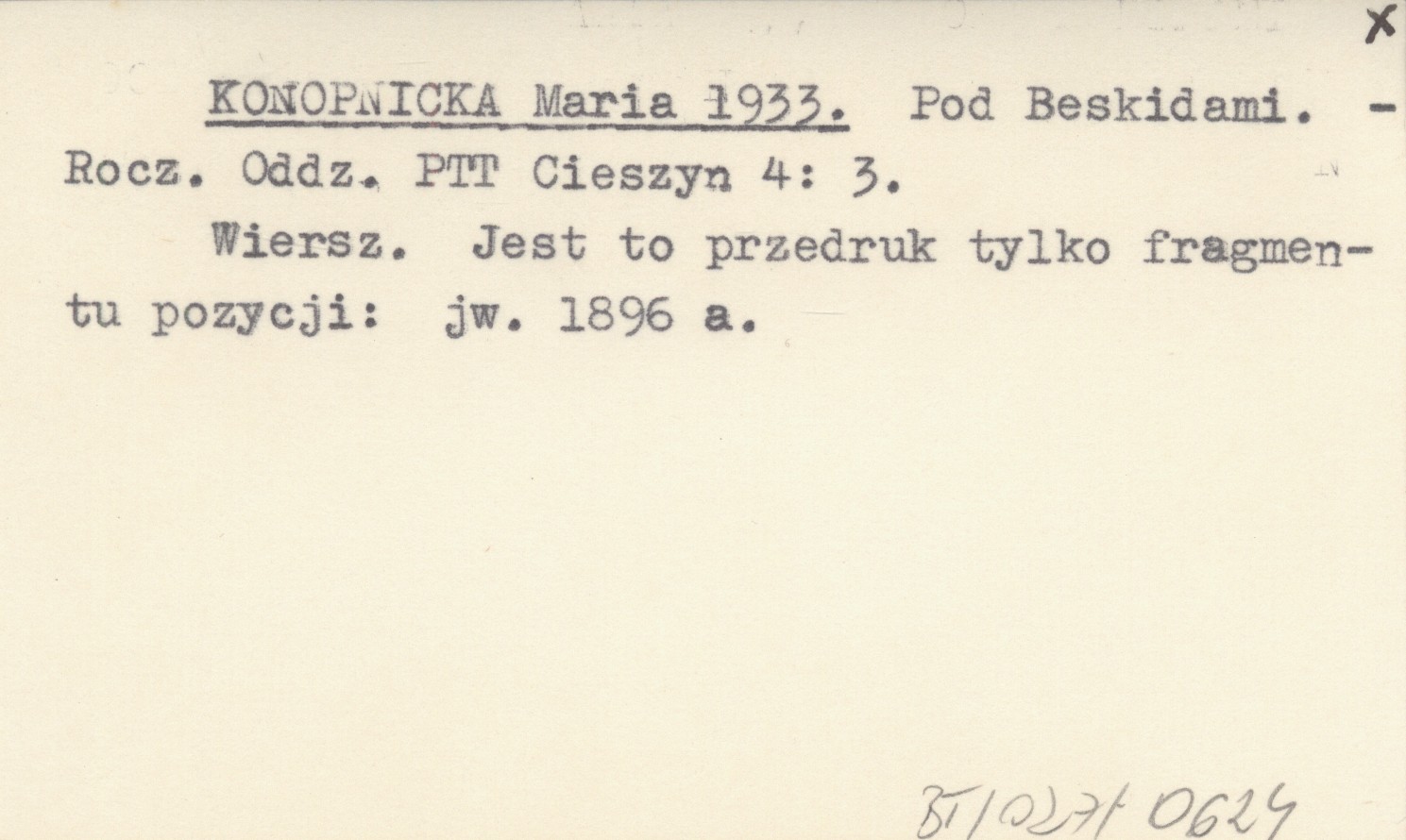 Rocznik Oddziału PTT (Cieszyn) , 4: 3. Wiersz. Jest to przedruk tylko fragmentu pozycji: jw. 1896 a