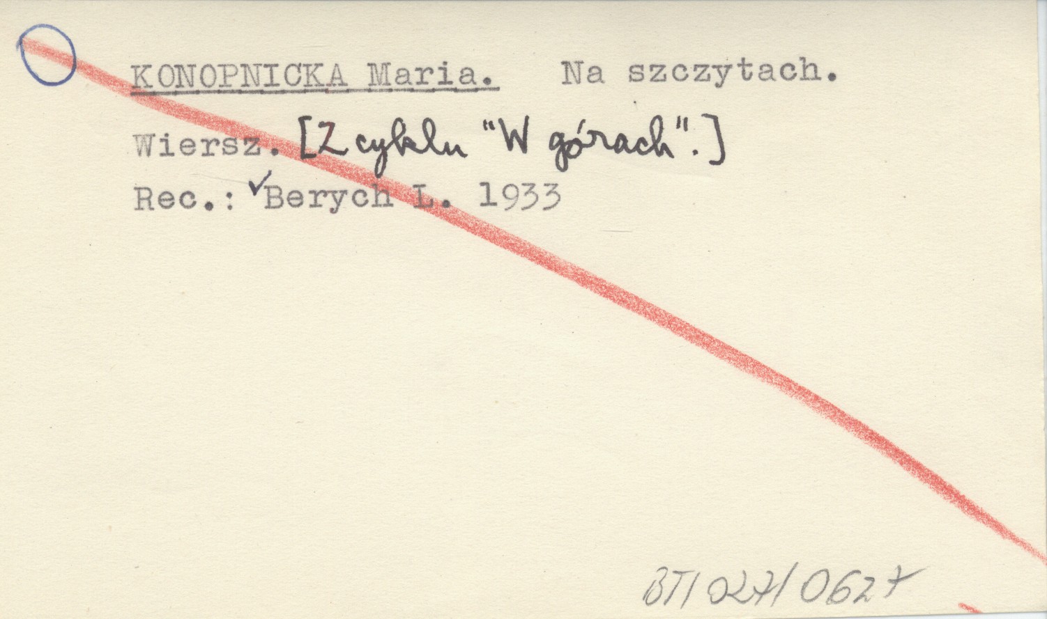 , Wiersz. [Z cyklu "W górach".] REC: BERYCH L. 1933
