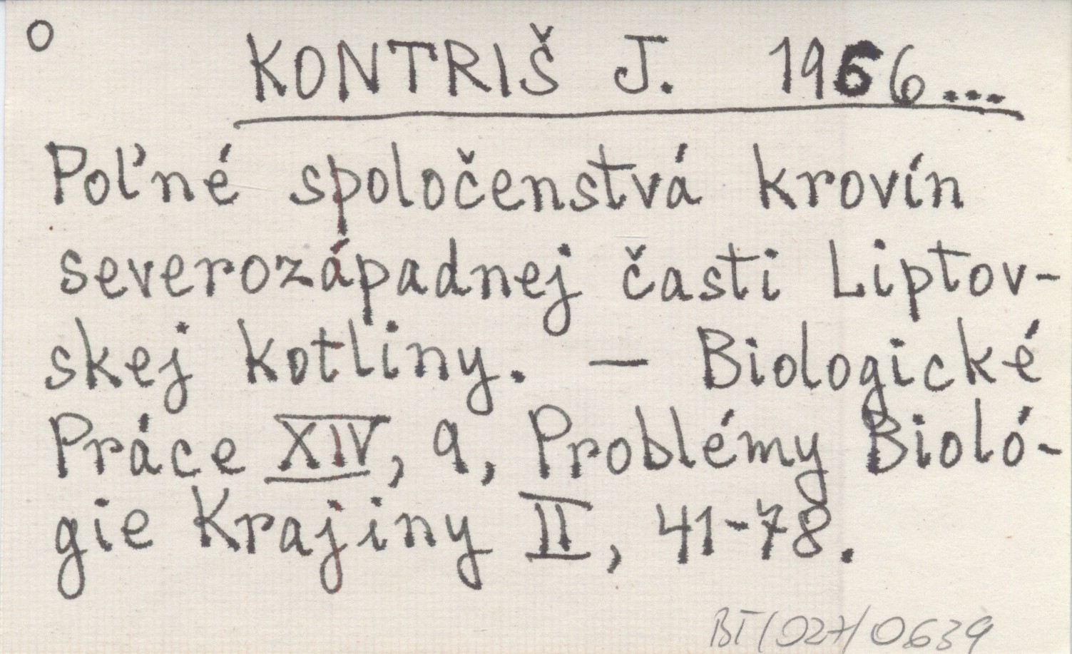 Biologické Práce, Problémy Biológie Krajiny, XIV, 9, II, 41-78.