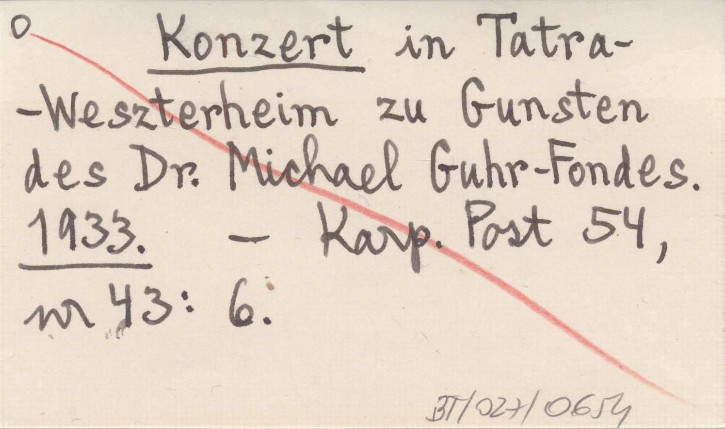 Konzert in Tatra-Weszterheim zu Gunsten des Dr. Michael Guhr-Fondes. 1933