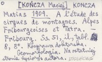 KONCZA Matias [KOŃCZA Maciej 1909 A l'étude des cirques de montagnes. Alpes Fribourgeoises et Tatra.
