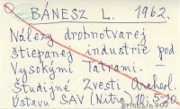 BÁNESZ L. 1962 Nálezy drobnotvarej štiepanej industrie pod Vysokými Tatrami.