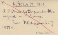 KOŃCZA M. 1909 A l'étude des cirques des montagne.