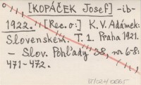 -ib- [KOPÁČEK Josef] 1922 K. V. Adámek: Slovenskem. T. 1. Praha 1921.