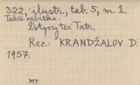 Prace i Materiały Etnograficzne (Łódź ; Lublin ;) , R. 1950-1951, druk 1951, t. 8-9: 155-322, il., 5 k. tabl., 1 m. Dotyczy też Tatr. Także odbitka. REC: KRANDŽALOV D. 1957