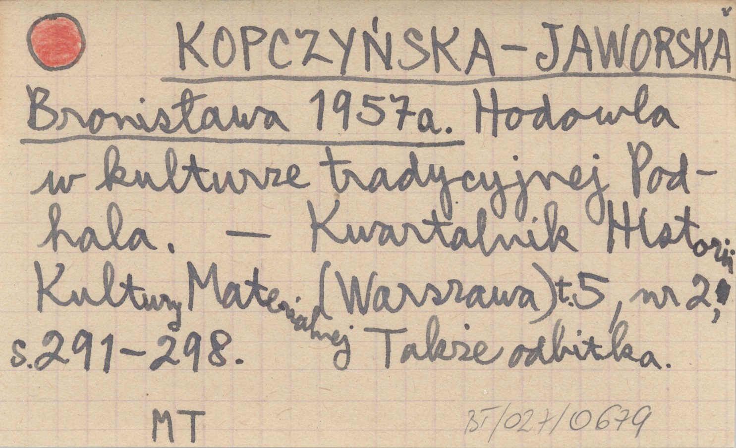 KOPCZYŃSKA-JAWORSKA Bronisława 1957 a Hodowla w kulturze tradycyjnej Podhala.