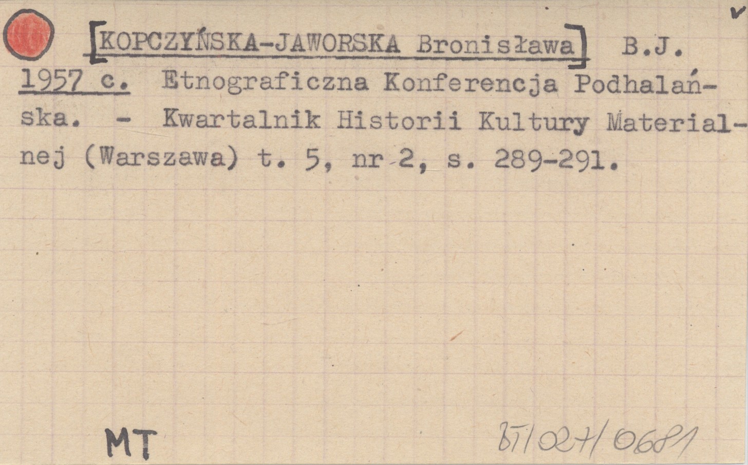 B.J. [KOPCZYŃSKA-JAWORSKA Bronisława] 1957 c Etnograficzna Konferencja Podhalańska.