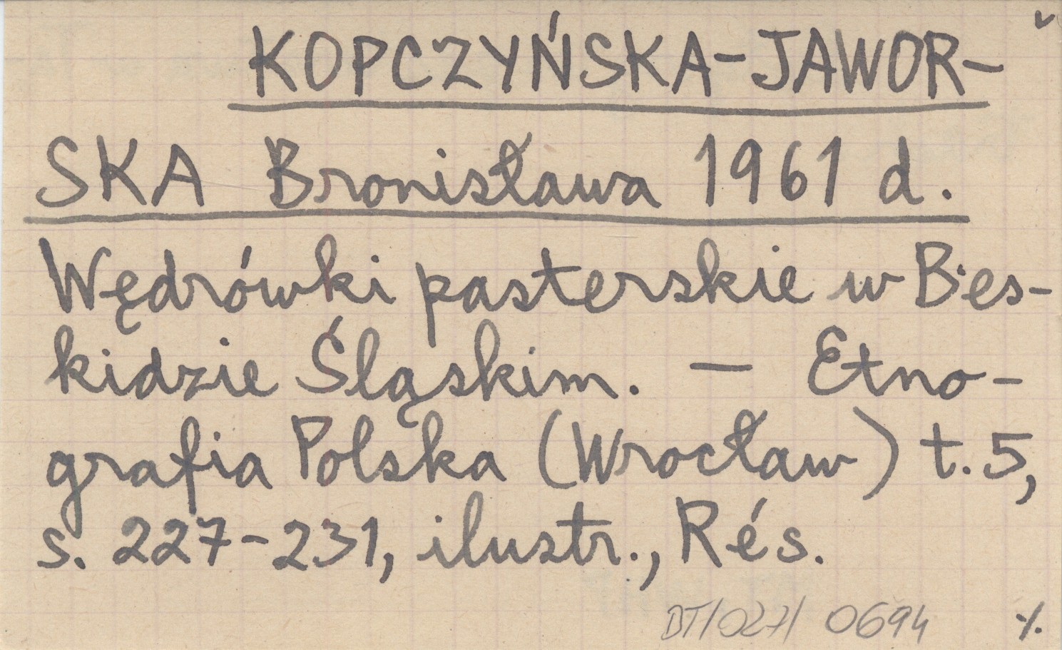 KOPCZYŃSKA-JAWORSKA Bronisława 1961 d Wędrówki pasterskie w Beskidzie Śląskim.