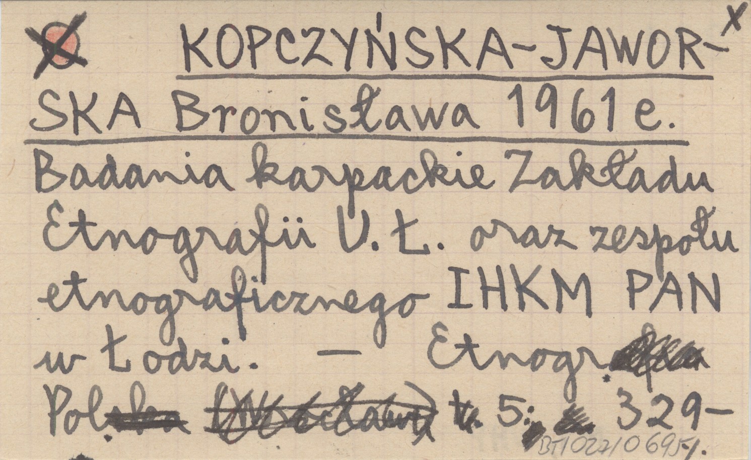 KOPCZYŃSKA-JAWORSKA Bronisława 1961 e Badania karpackie Zakładu Etnografii U. Ł. oraz zespołu etnograficznego IHKM PAN w Łodzi.